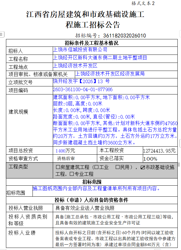 上饒經(jīng)開區(qū)新科大道東側(cè)二期土地平整項(xiàng)目招標(biāo)公告(3).docx
