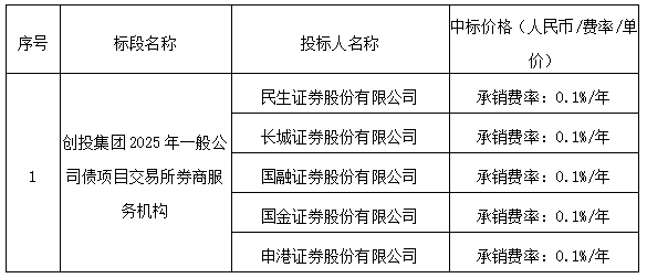 • 創(chuàng)投集團(tuán)2025年一般公司債項(xiàng)目交易所券商服務(wù)機(jī)構(gòu) 中標(biāo)公示